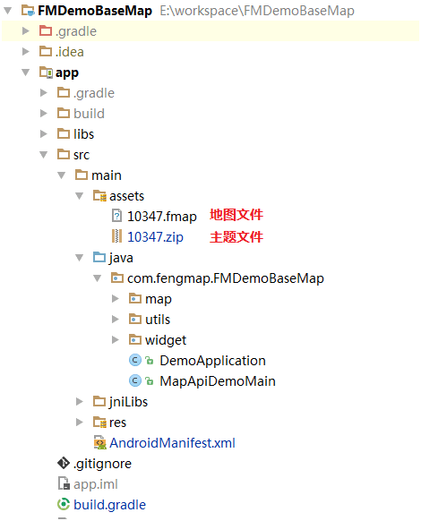 将下载并解压得到的地图数据和主题资源复制至工程assets目录下: